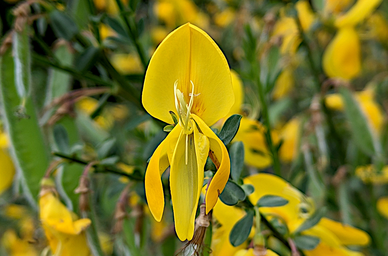 Plante mellifère de famille des fabacées très appréciée des abeilles et des bourdons, le Genêt à balais est pollinisé par les insectes : le parfum du genêt attire les pollinisateurs à l'intérieur de la fleur encore fermée qui, lorsque l'insecte a pu y pénétrer, relâche ses étamines brusquement en chargeant l'individu de pollen.