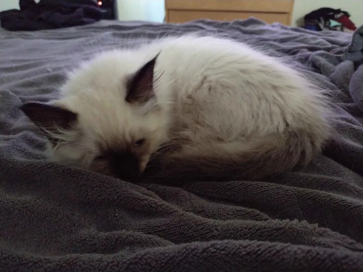As soon as I fill my coffee cup she starts dancing around me. She will gently pester until I sit down so she can climb up for a half hour of cuddles.