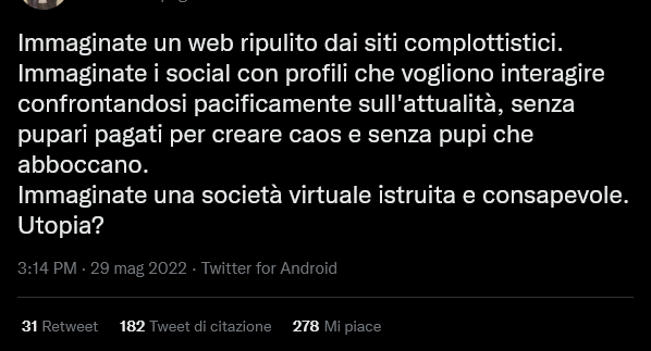 - un'opinione, anche se sbagliata, non è per forza disinformazione! Non fatevi prendere dal complesso dell'inquisitore contro ogni cosa che sa dii fake news