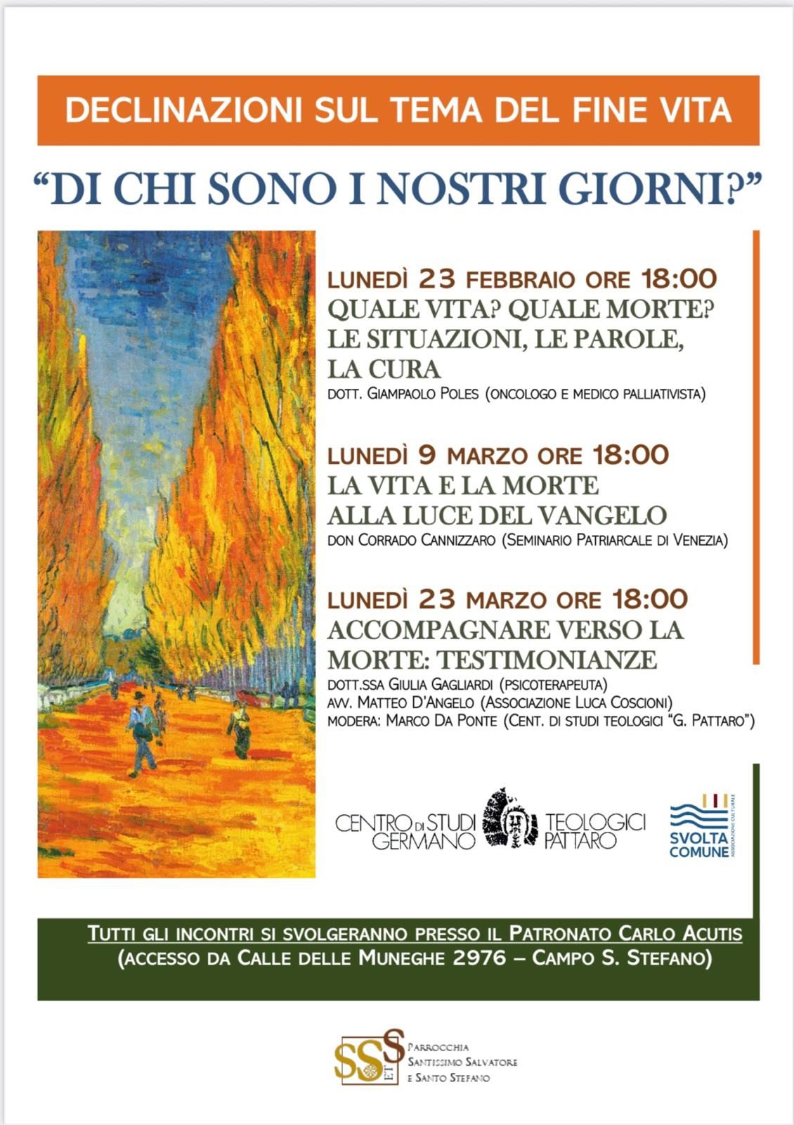 Questi incontri sono organizzati dalla Parrocchia Santissimo Salvatore e Santo Stefano, in collaborazione con il Centro di Studi Teologici Germano Pattaro e l’associazione Svolta Comune. Qui la locandina completa di ogni appuntamento